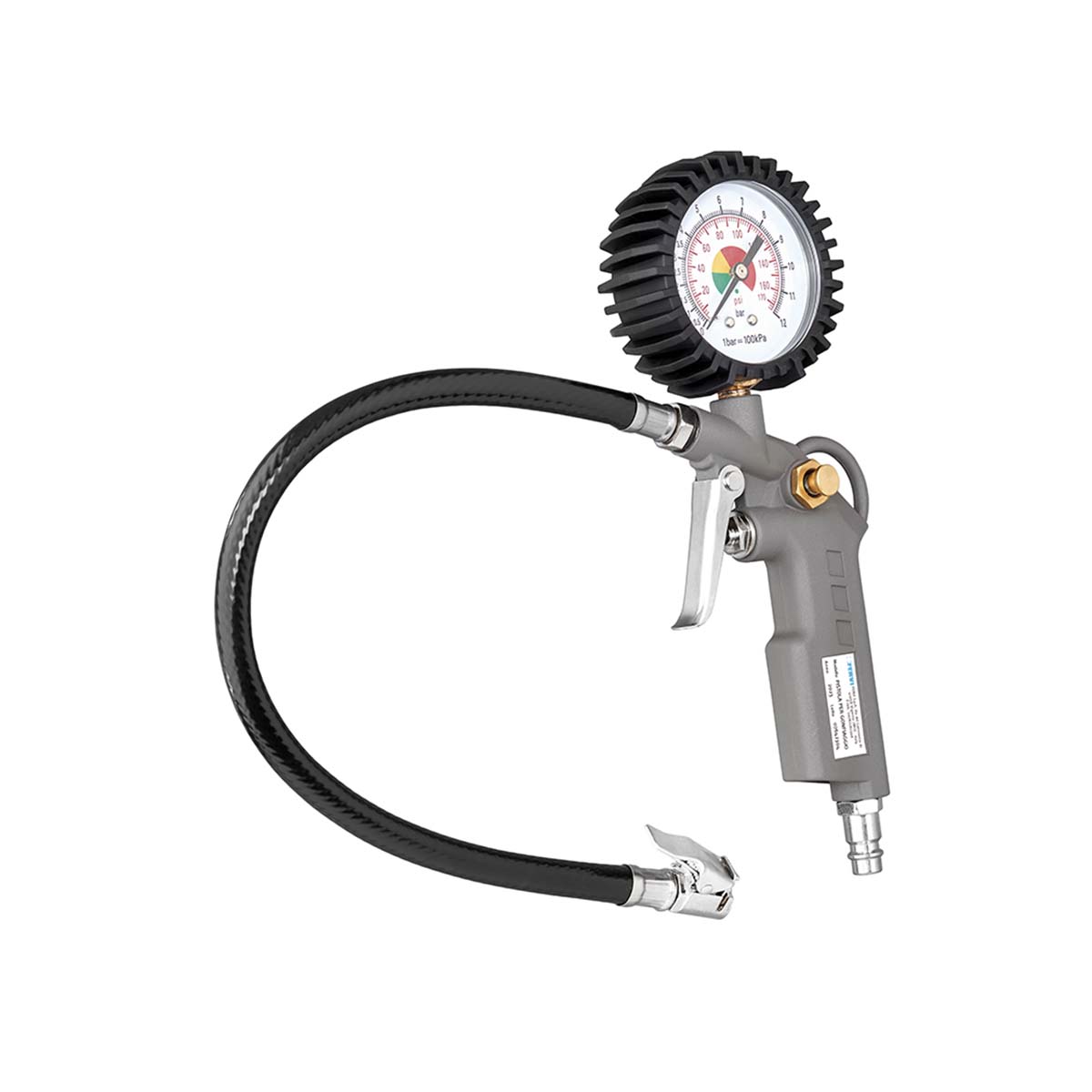 La pistola gonfiaggio con manometro Fervi 0608 è lo strumento ideale per gonfiare pneumatici di auto, moto, biciclette e veicoli commerciali in modo rapido e preciso. Dotata di manometro Ø 63 mm, consente una lettura chiara e immediata fino a 12 bar (174 psi), garantendo sempre la giusta pressione per la massima sicurezza su strada.