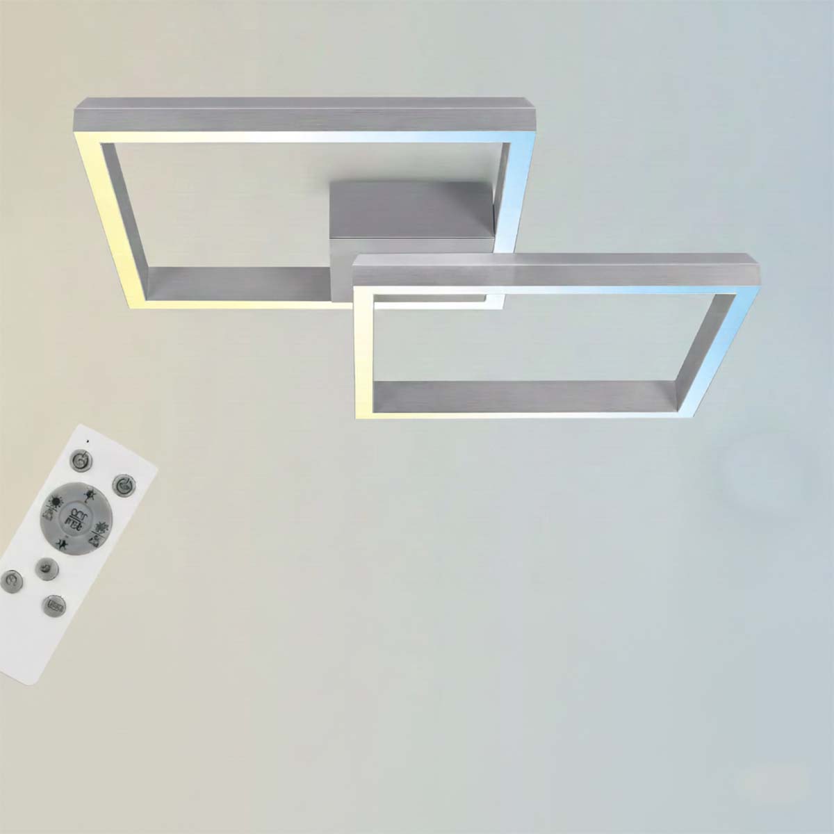 Con una potenza di 34–40W e 3800 lumen, la plafoniera garantisce un’illuminazione forte e uniforme. Il design moderno da 640 × 640 × 100 mm, abbinato alla finitura color alluminio, si integra perfettamente in qualsiasi stile d’arredo.