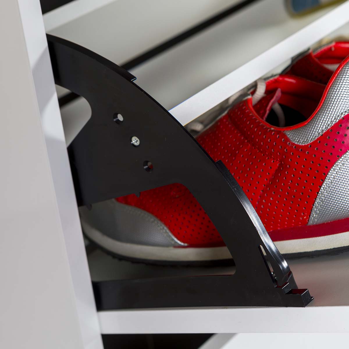 Le 3 ante a ribalta permettono un’apertura fluida e comoda, offrendo spazio per fino a 18 paia di scarpe, mantenendo ogni ambiente ordinato e curato. La finitura bianca dona un aspetto elegante e minimal, perfetto per arredamenti moderni. Il suo design slim e salvaspazio la rende un complemento funzionale e discreto, ideale per chi desidera coniugare estetica e praticità.