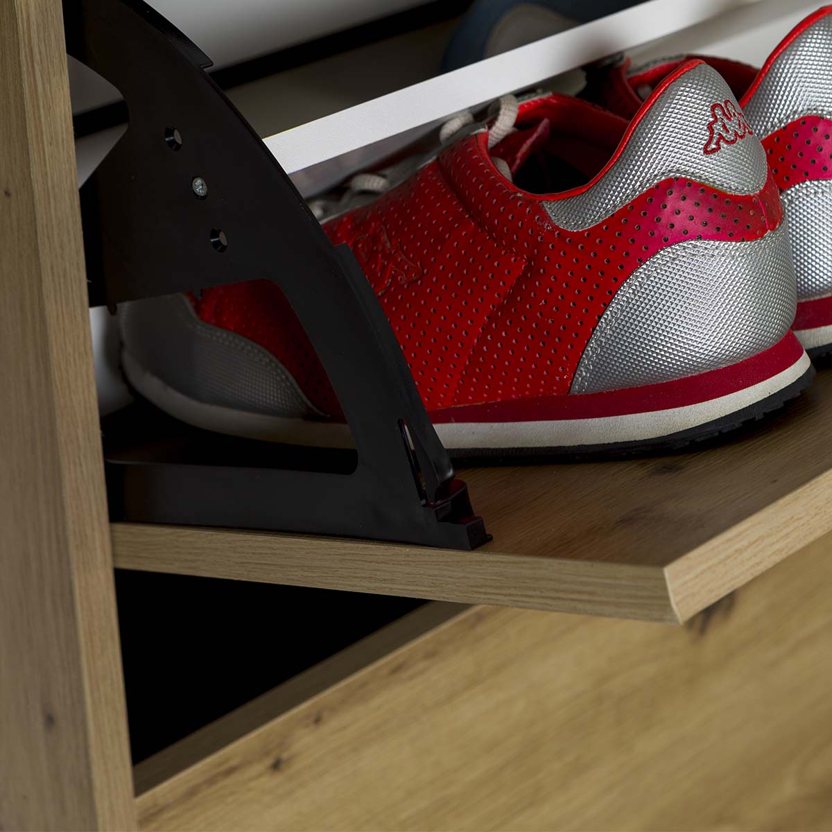Le 3 ante a ribalta permettono un’apertura fluida e comoda, offrendo spazio per fino a 18 paia di scarpe, mantenendo ogni ambiente ordinato e curato. La finitura rovere dona un aspetto elegante e scandinavo, perfetto per arredamenti moderni. Il suo design slim e salvaspazio la rende un complemento funzionale e discreto, ideale per chi desidera coniugare estetica e praticità.