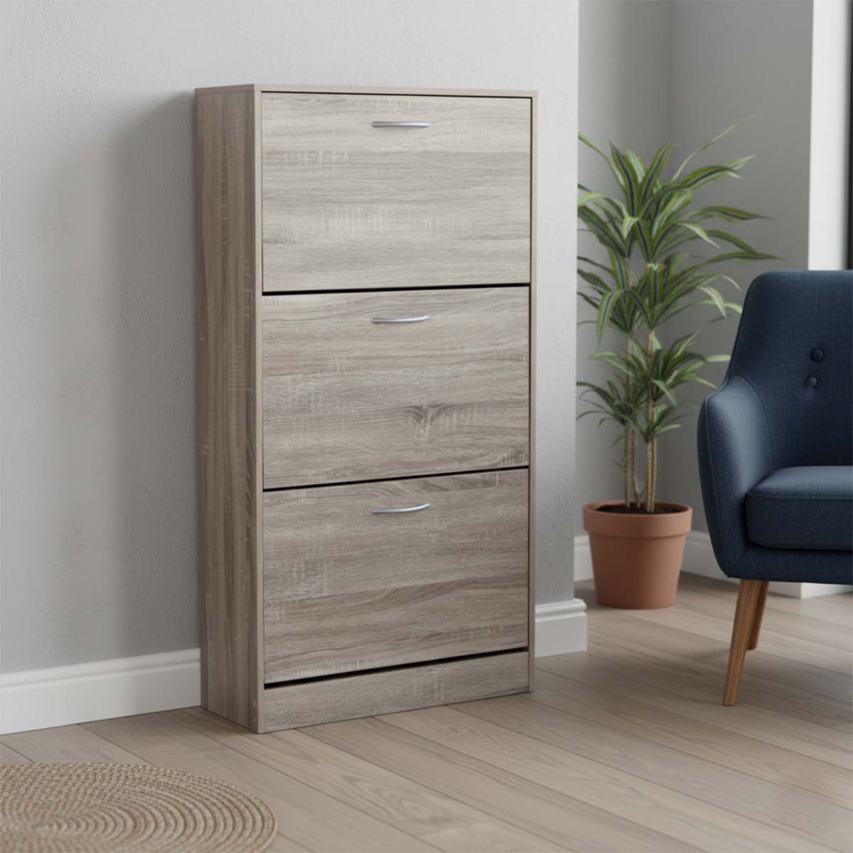 La scarpiera con 3 ante a ribalta è la soluzione perfetta per chi desidera ordine, praticità e design in un unico mobile compatto. Con il suo stile moderno e la finitura elegante, si adatta facilmente a qualsiasi ambiente della casa, dall’ingresso alla camera da letto, donando un tocco di sobria raffinatezza.