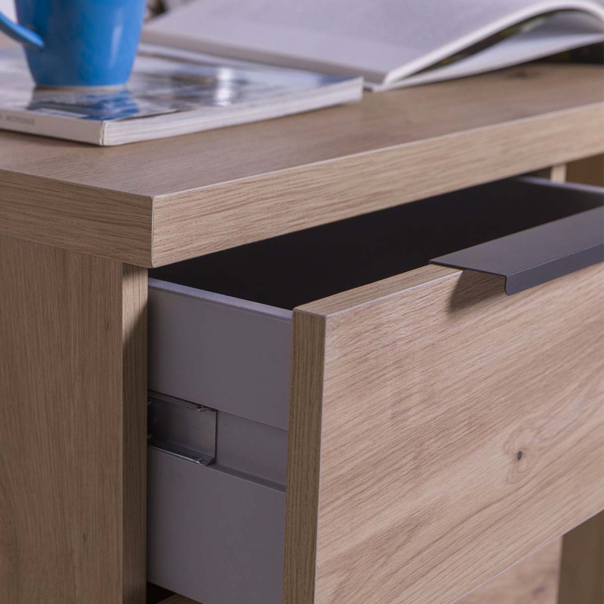 Con dimensioni compatte di 110x75x59 cm, questa scrivania combina design contemporaneo e funzionalità: i 4 cassetti con maniglie in metallo offrono spazio pratico per archiviare documenti, cancelleria e accessori, mentre il piano ampio e resistente (portata fino a 35 kg) ti permette di posizionare computer, libri e tutto il necessario per lavorare in modo ordinato ed efficiente.