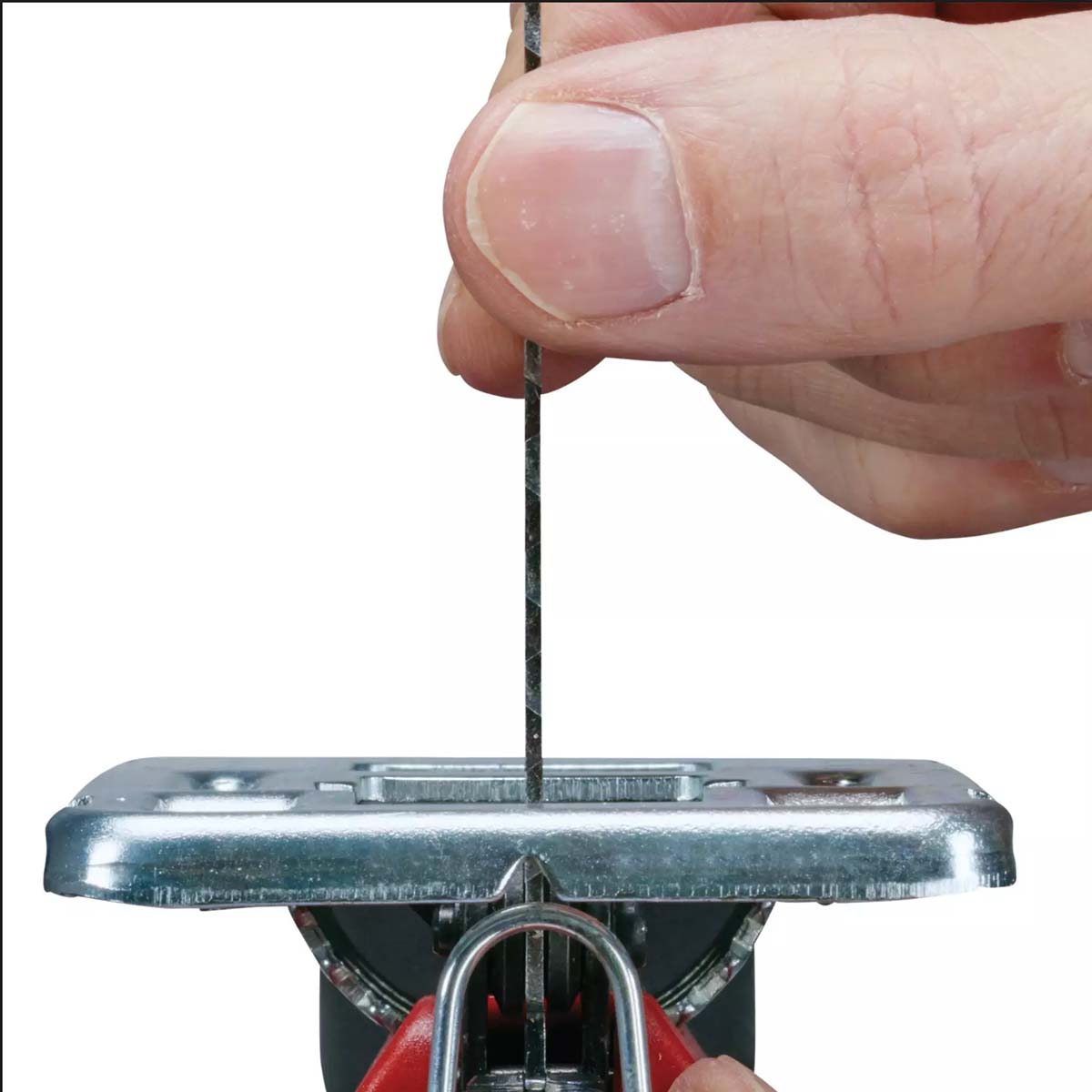 Capace di tagliare fino a 80 mm nel legno, 20 mm nella plastica e 10 mm nell’acciaio, questo seghetto alternativo è perfetto per lavorazioni in officina, garage o per il bricolage domestico. Il platorello inclinabile fino a 45° permette di realizzare tagli obliqui con precisione, mentre la velocità regolabile fino a 3000 giri/min consente un controllo ottimale in base al materiale.