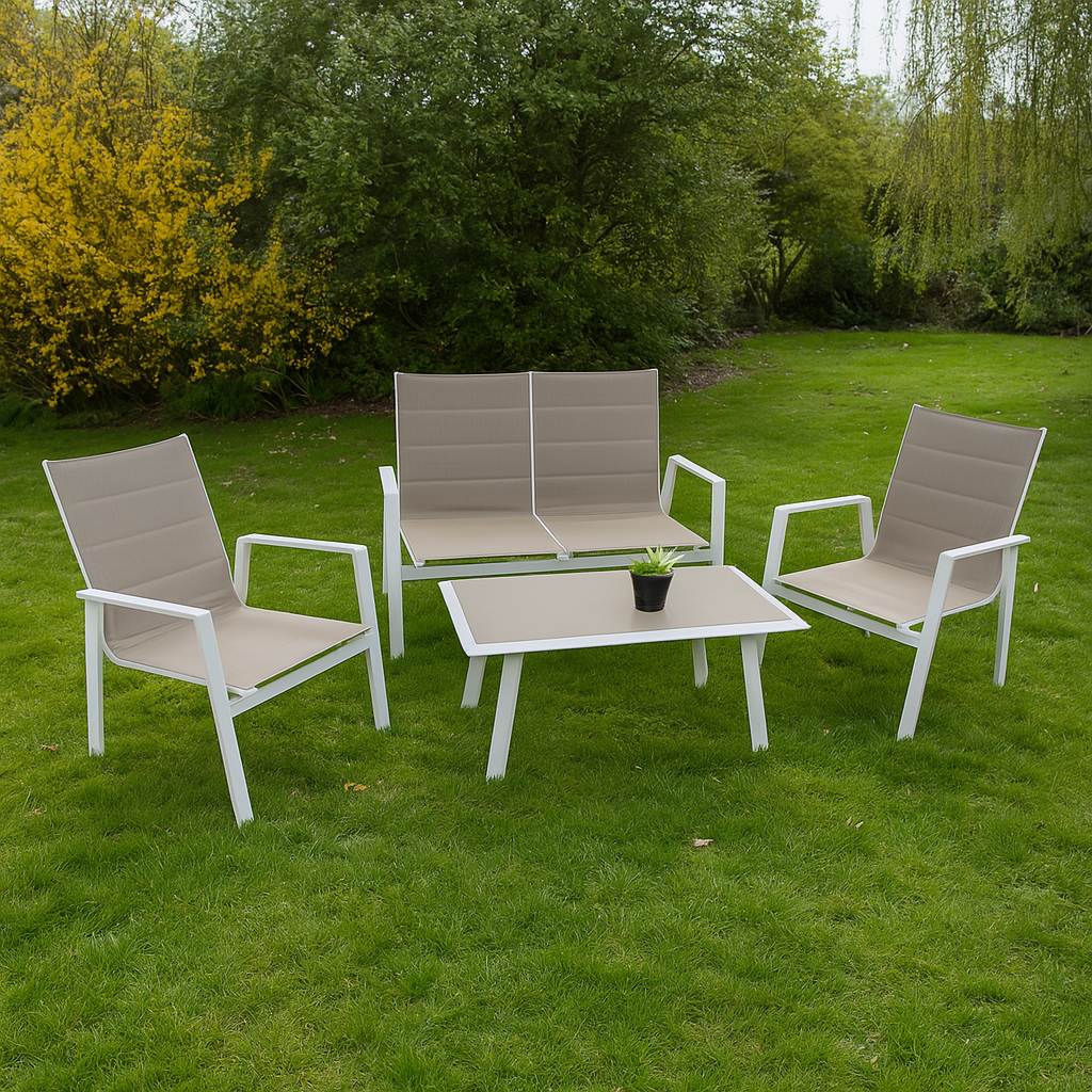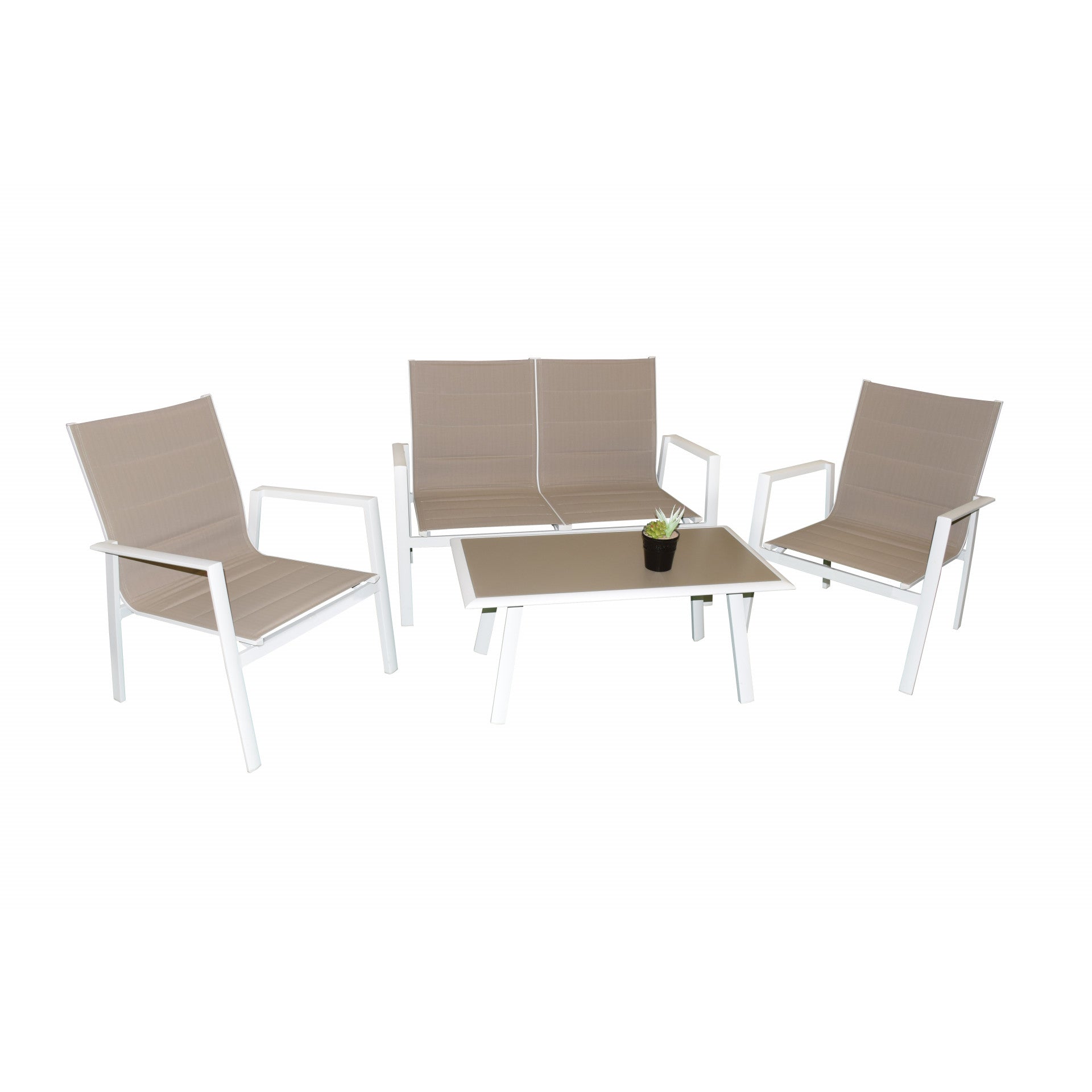 Ser da giardino con sedie divano e tavolo basso bianco tortora Almissa