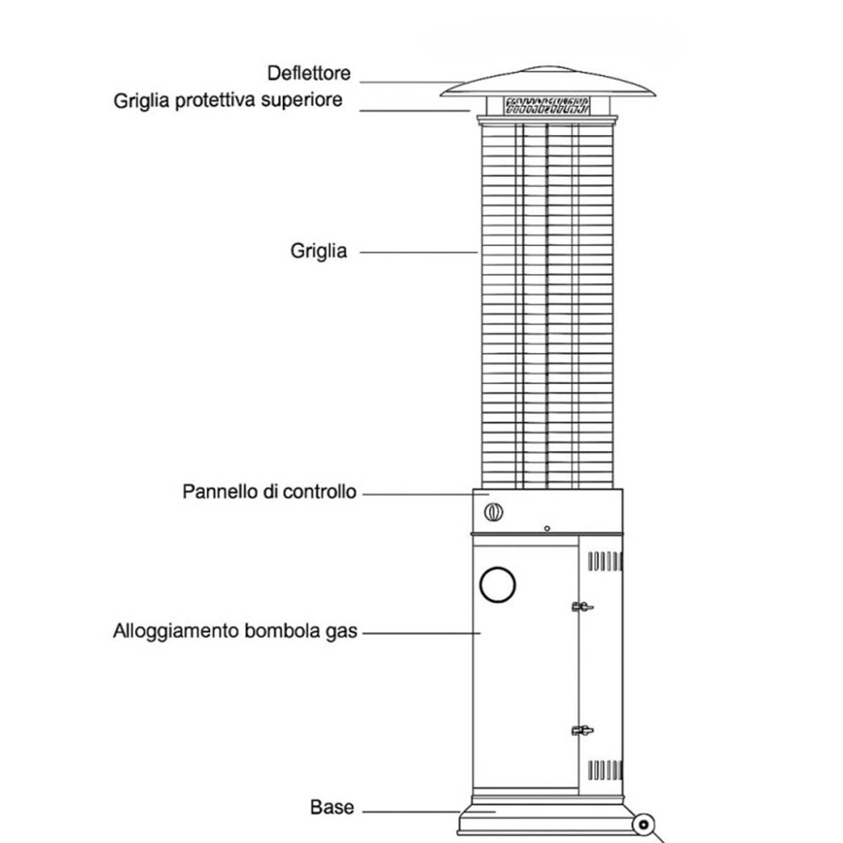 - Compatibilità: bombole GPL fino a 15 kg (Ø 34 cm, H 69 cm)