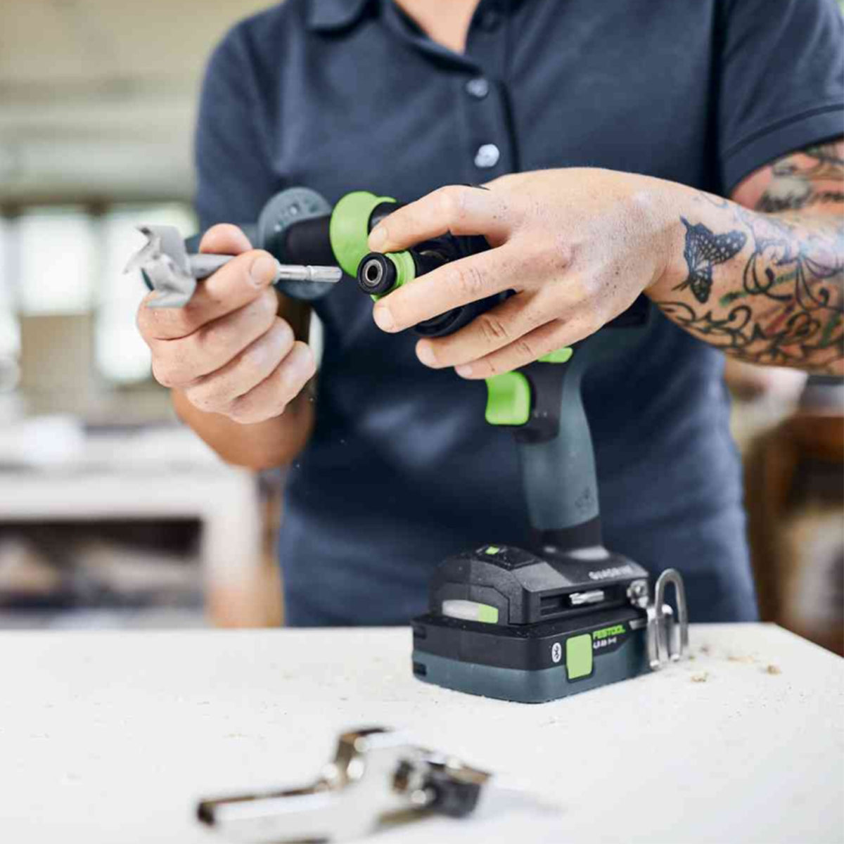 Il Festool TPC 18/4 I-Basic-5,0 è un trapano avvitatore a batteria con percussione di ultima generazione, progettato per professionisti che richiedono massima potenza, precisione e sicurezza. Dotato del potente motore Brushless EC-TEC e alimentato da una batteria agli ioni di litio da 18V – 5,0Ah, offre prestazioni eccezionali e una durata nel tempo superiore, anche sotto carico continuo.