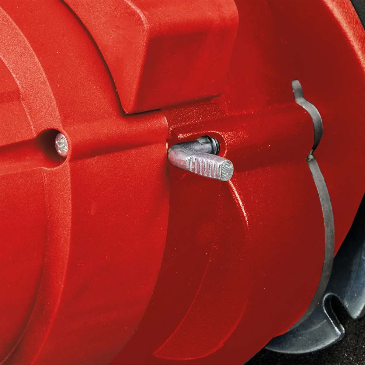 La struttura stabile e bilanciata rende la troncatrice utilizzabile anche su banco da lavoro, garantendo comfort e sicurezza durante l’uso. Il deflettore per scintille protegge l’operatore da residui incandescenti, mentre la maniglia aggiuntiva e il fermo blocco integrato facilitano il trasporto e la movimentazione. Comoda anche da mantenere in ordine, la TC-MC 355/1 dispone di un portautensili integrato per riporre la chiave di servizio inclusa.